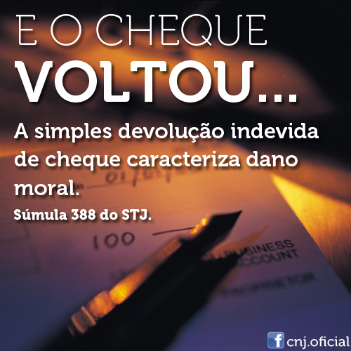 A Corte firmou o entendimento de que “a devolução injustifi cada de cheques, por ato culposo da instituição financeira, autoriza a condenação por danos morais, sendo desnecessária a comprovação do prejuízo, que, neste caso, é presumível e decorre da experiência comum, uma vez que a indevida devolução do cheque causa desconforto e abala tanto a honra como a imagem de seu emitente”.